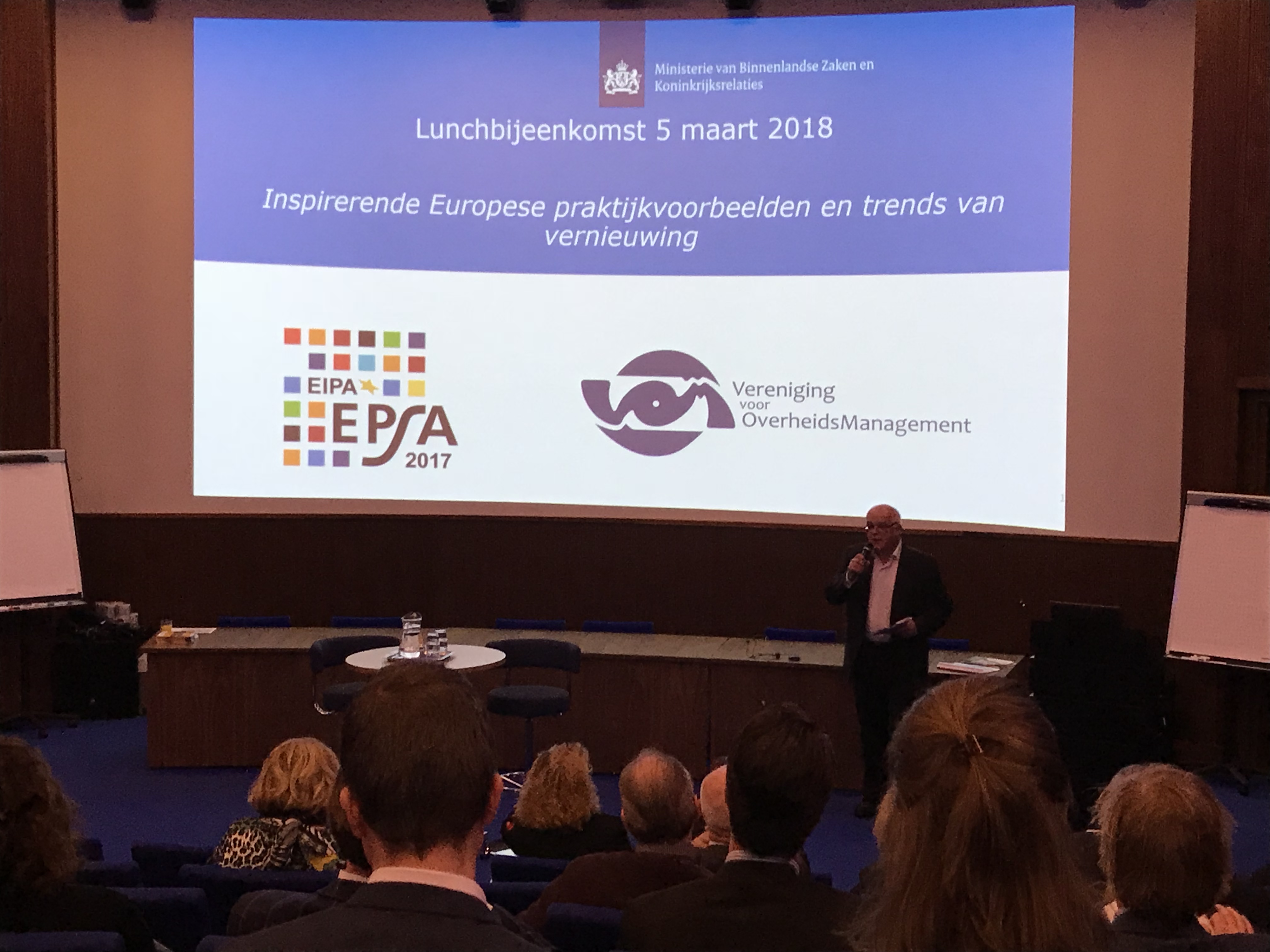 Op 5 maart 2018 vond er in het auditorium van het Ministerie van Binnenlandse Zaken en Koninkrijksrelaties (BZK) een lunchbijeenkomst plaats over Europese trends van vernieuwing en innovatie. Het ministerie organiseerde deze bijeenkomst samen met het European Institute of Public Administration (EIPA) en de Vereniging voor OverheidsManagement (VOM). Een aantal sprekers uit binnen- en buitenland deelden hun kennis en ervaring over innovatieve praktijkvoorbeelden in Europa.